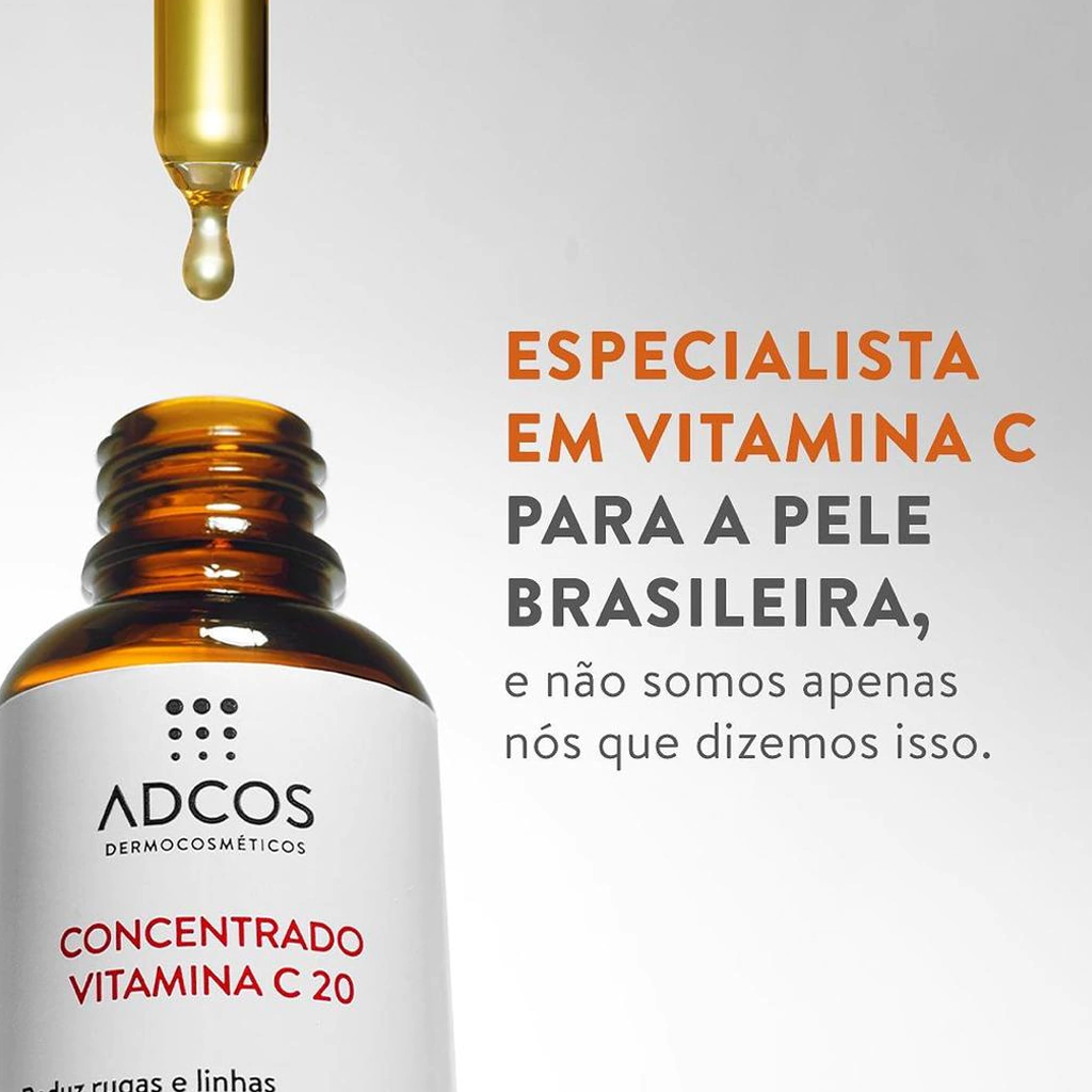 O Derma Complex Concentrado Vitamina C 20 da Adcos é um poderoso sérum anti-idade com 20% de Vitamina C estabilizada, desenvolvido para atuar profundamente na pele, promovendo ação antioxidante, clareamento de manchas, uniformização do tom e redução de rugas e linhas finas.