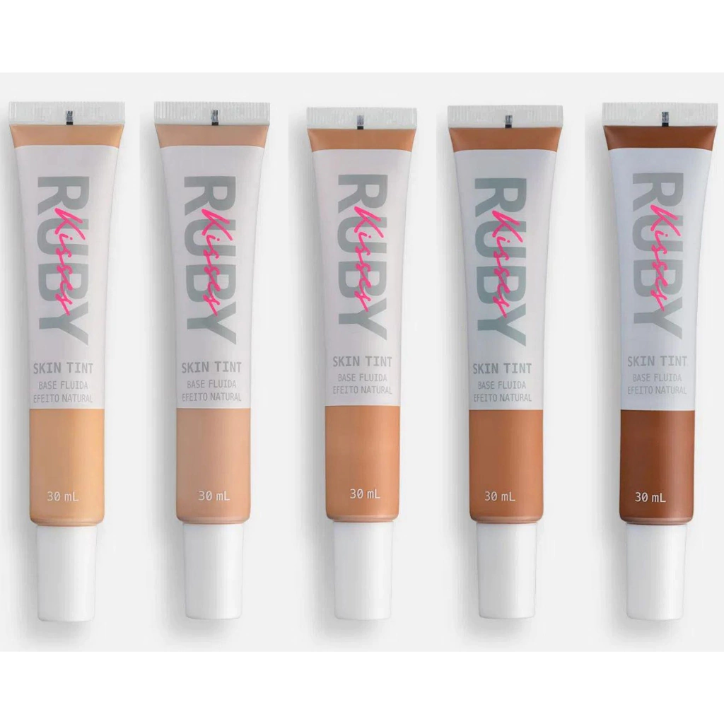 A Base Fluida Skin Tint Efeito Natural - Ruby Kisses é um produto de alta performance feito na Coreia do Sul, referência em K-Beauty. Com acabamento matte aveludado e efeito blur, ela oferece uma cobertura média construível, que não marca nem craquela, garantindo um visual natural e impecável.