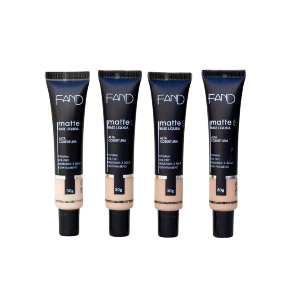 A Base Líquida Matte Alta Cobertura Fand Makeup é perfeita para quem busca uma pele impecável com acabamento profissional. Sua fórmula foi desenvolvida para proporcionar alta cobertura sem pesar, uniformizando o tom da pele, disfarçando imperfeições e deixando um acabamento matte natural.