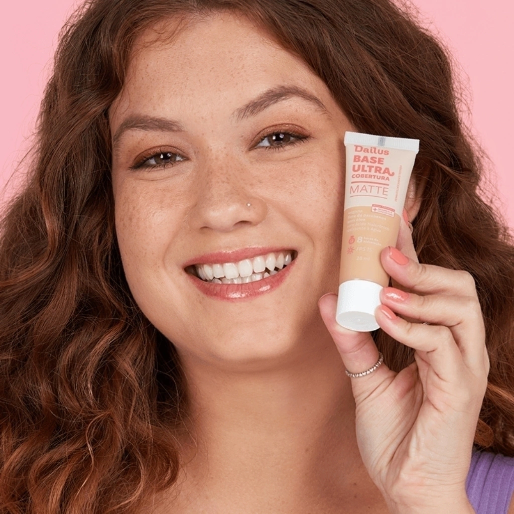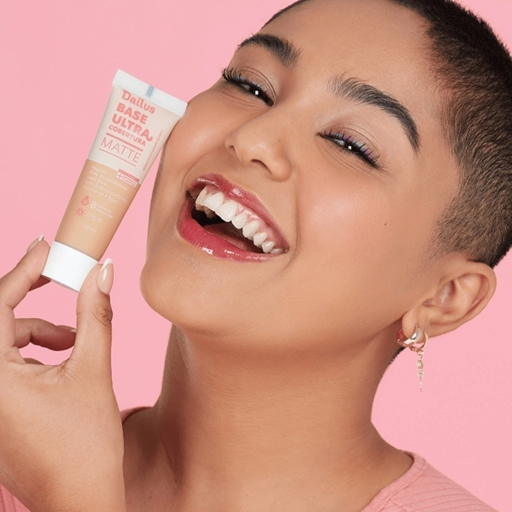 A Base Matte Dailus Ultra Cobertura 28ml proporciona alta cobertura e acabamento impecável, ideal para uniformizar o tom da pele e disfarçar imperfeições. Sua fórmula matte controla a oleosidade, garantindo um aspecto natural e duradouro ao longo do dia. Com textura leve e fácil de aplicar, permite construir camadas para cobertura personalizada, mantendo a pele confortável e sem aspecto pesado. Perfeita para todos os tipos de pele, é a escolha ideal para maquiagens do dia a dia ou ocasiões especiais.