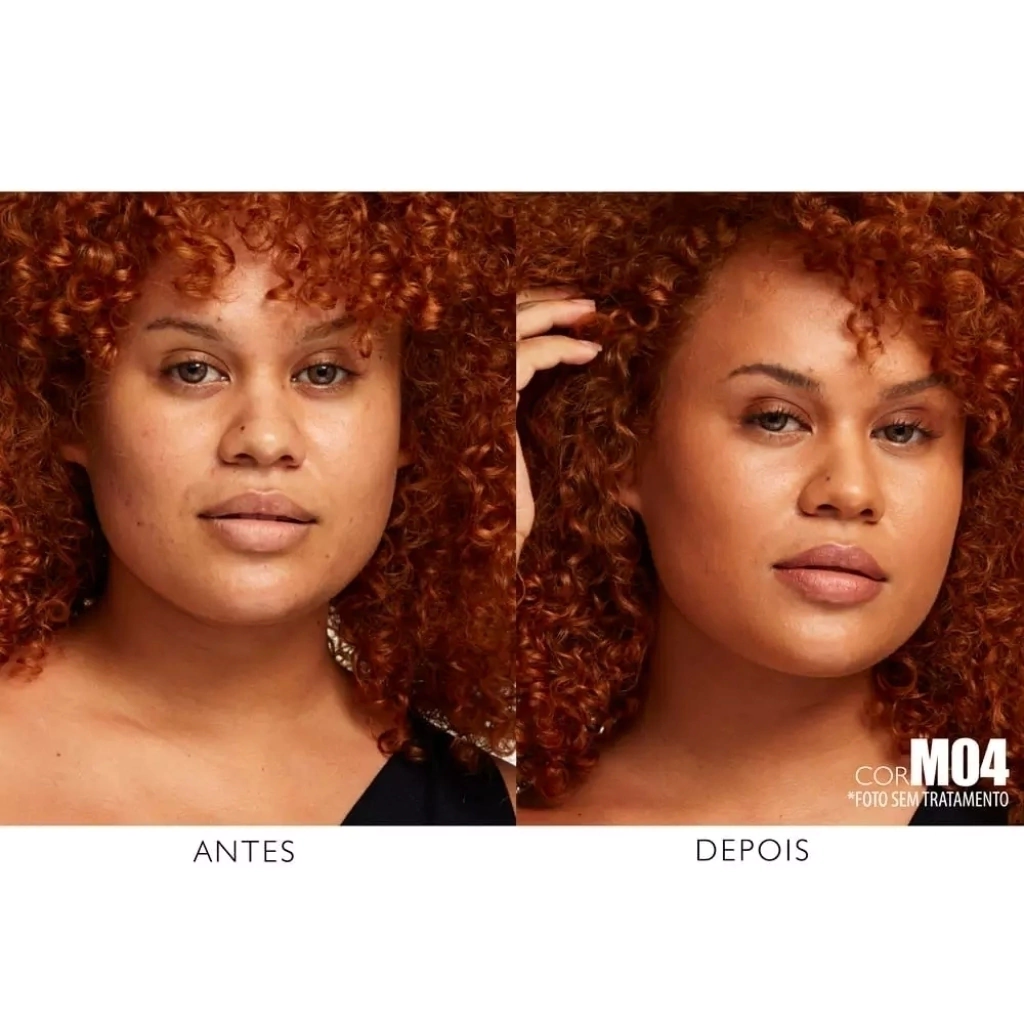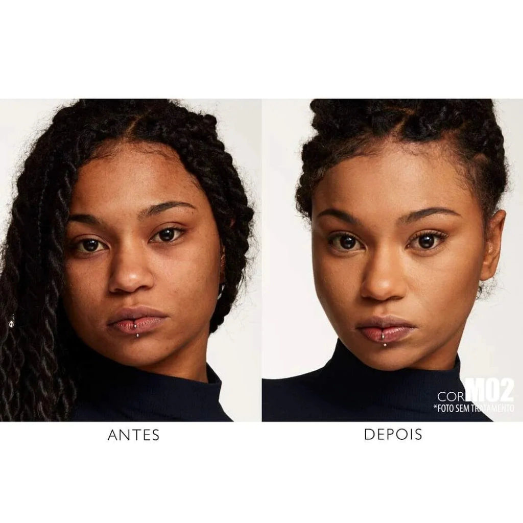 Cobertura média a alta: uniformiza o tom da pele e disfarça imperfeições.