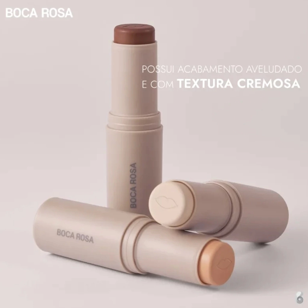 A Base Multifuncional - Stick Pele Boca Rosa é uma inovação das bases tradicionais. É multifuncional, fácil de aplicar e ideal para todos os tipos de pele, sendo item obrigatório na vida de quem vive um ritmo intenso. São três funções: base, contorno e corretivo. Disponível em 50 tonalidades que celebram a pluralidade de cada tom de pele, pioneira em representar a brasilidade.
