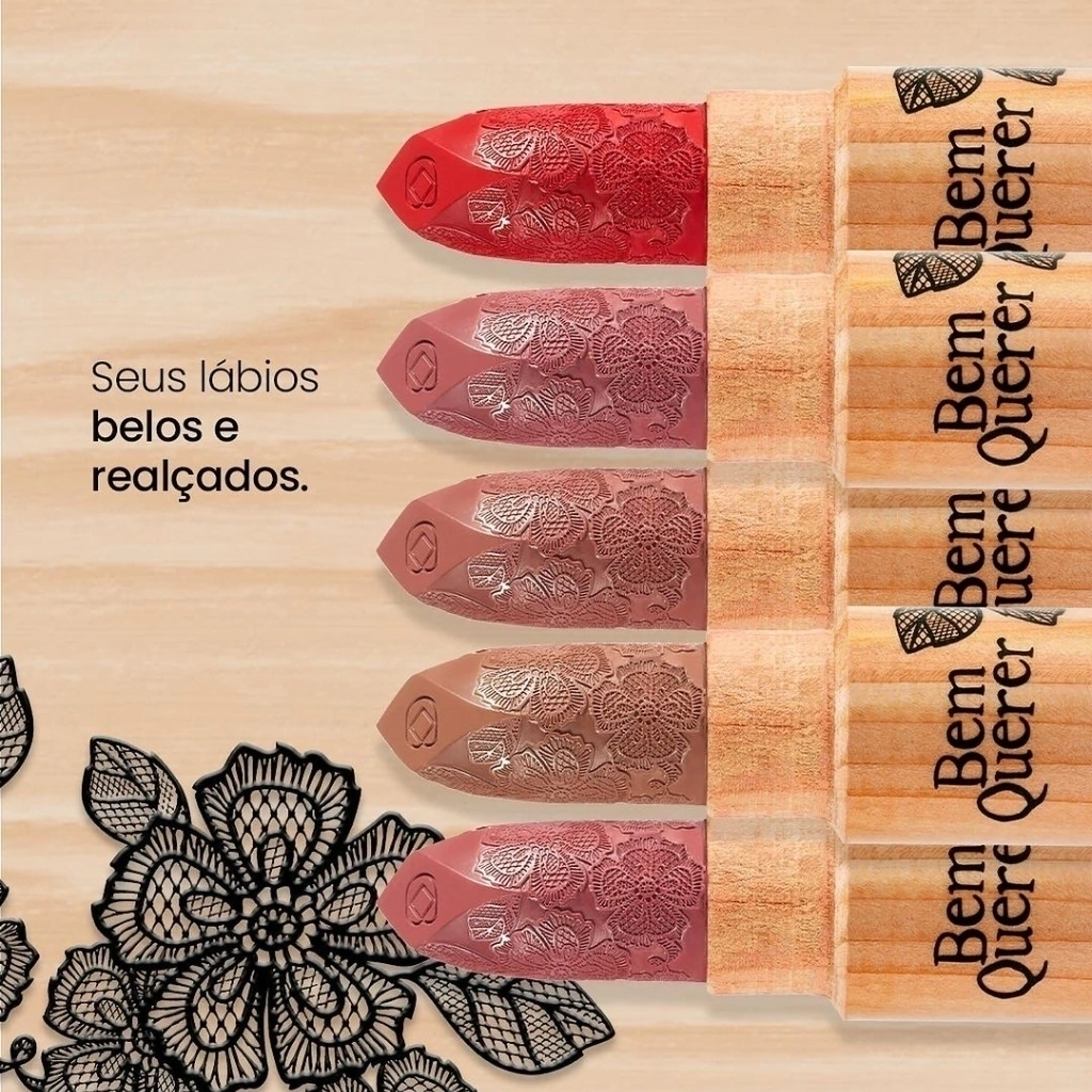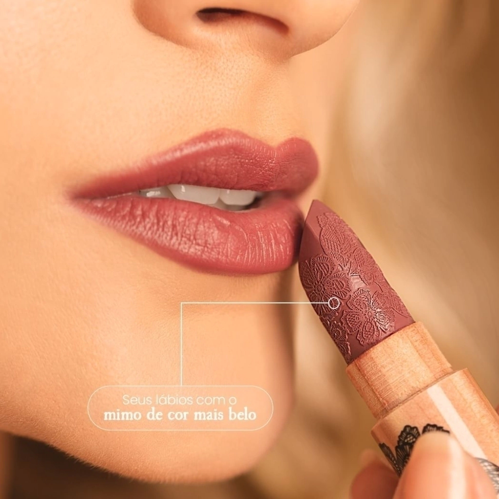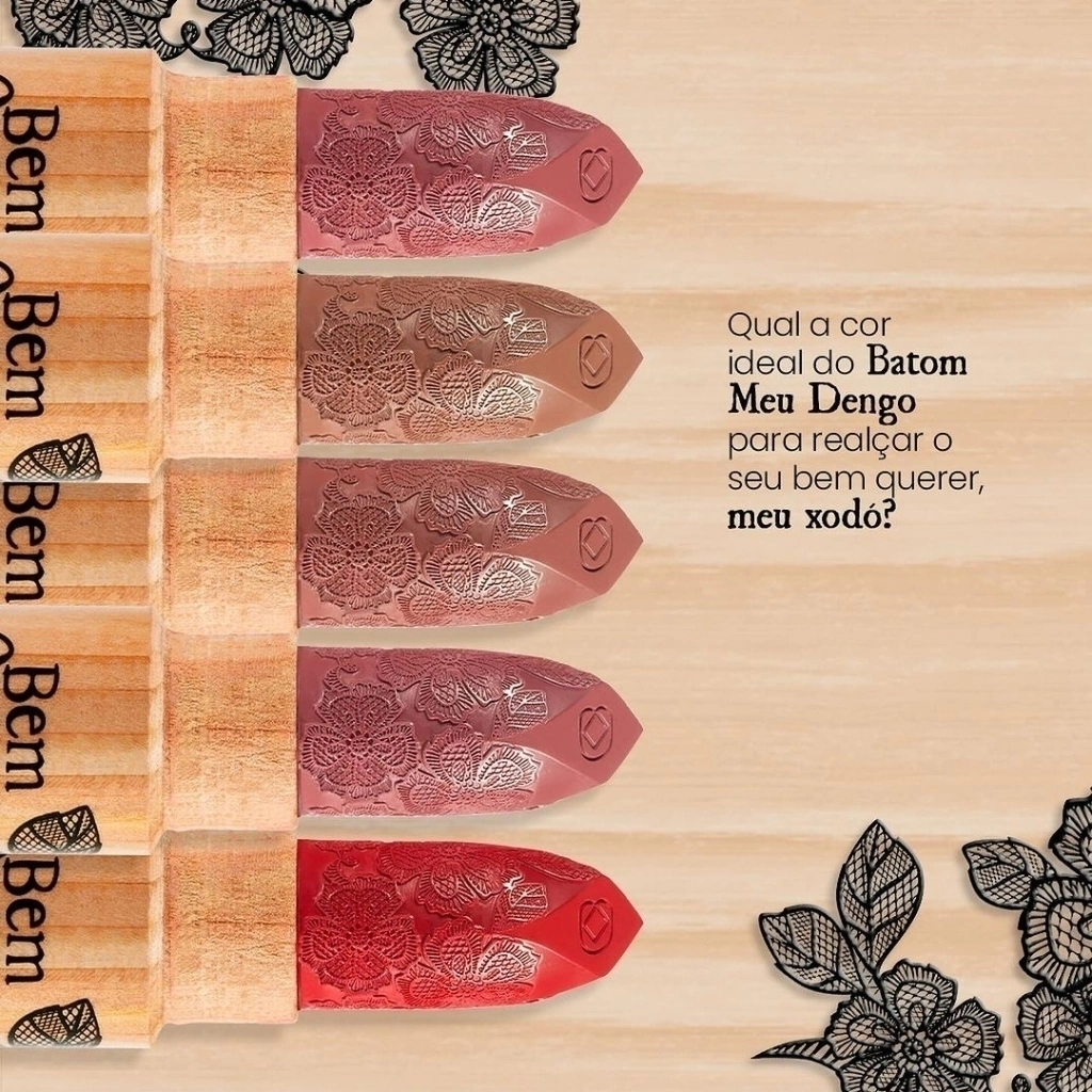 Traduzindo toda a delicadeza dos mais belos tecidos rendados, a Dalla apresenta o batom Meu Dengo, da linha Bem Querer. Enriquecido com propriedades altamente hidratantes e com pigmentação de tirar o fôlego, o produto - disponível em 5 cores perfeitas para valorizar as belezas de Norte a Sul - garante acabamento soft matte e sensação de conforto para os lábios.