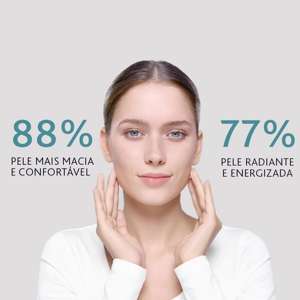 RESULTADOS: Conforto imediato e sensação de frescor. Dia após dia a pele recupera sua luminosidade, viço e hidratação.