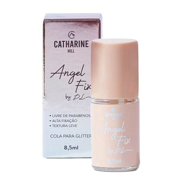 Cola líquida para glitter. Catherine Hill Pri Lessa Angel Fix possui fórmula leve e cremosa, garantindo alta fixação e longa durabilidade.