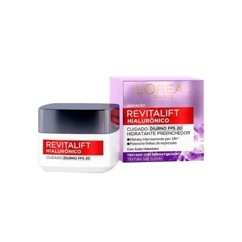 O novo Revitalift Hialurônico Cuidado Diurno 49g é enriquecido com Ácido Hialurônico, hidrata intensamente por 24h, preenche linhas de expressão, revitaliza a pele e a protege contra os raios UVA/UVB com seu FPS 20.