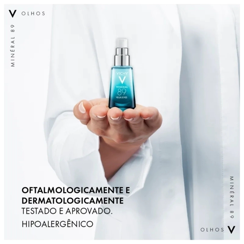 O Minéral 89 Olhos da Vichy é um hidratante concentrado para a área dos olhos, desenvolvido para hidratar intensamente, reforçar a barreira cutânea e reduzir os sinais de fadiga, como olheiras e linhas finas.