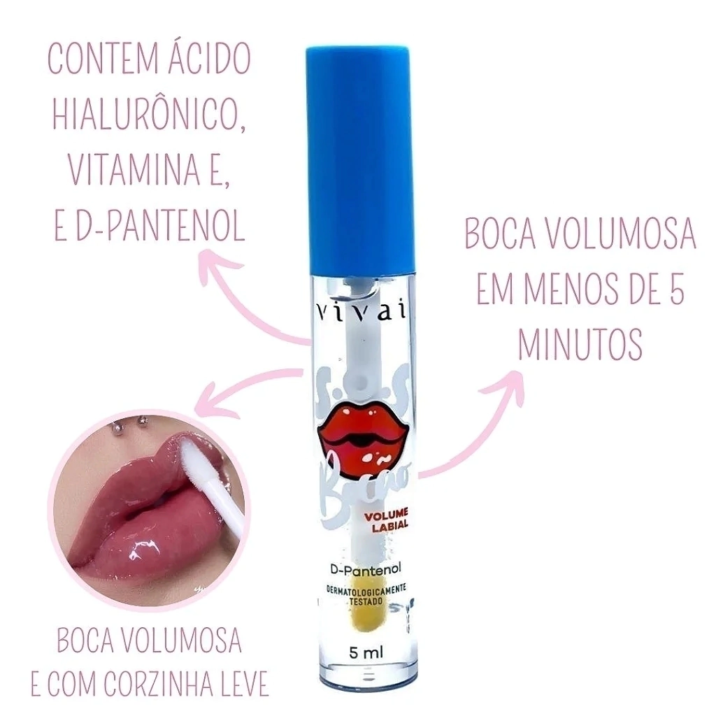 O Gloss Volume Labial Sos Bocão Vivai foi desenvolvido para quem deseja lábios volumosos, hidratados e com brilho intenso. Sua fórmula especial proporciona efeito plump imediato, deixando os lábios mais preenchidos e com aparência saudável. Além disso, possui textura suave e não pegajosa, garantindo conforto e fixação por mais tempo. Ideal para completar a maquiagem do dia a dia ou para ocasiões especiais, realçando a beleza natural da boca.