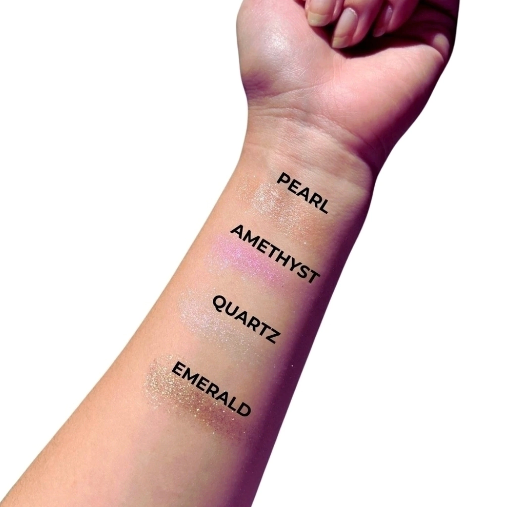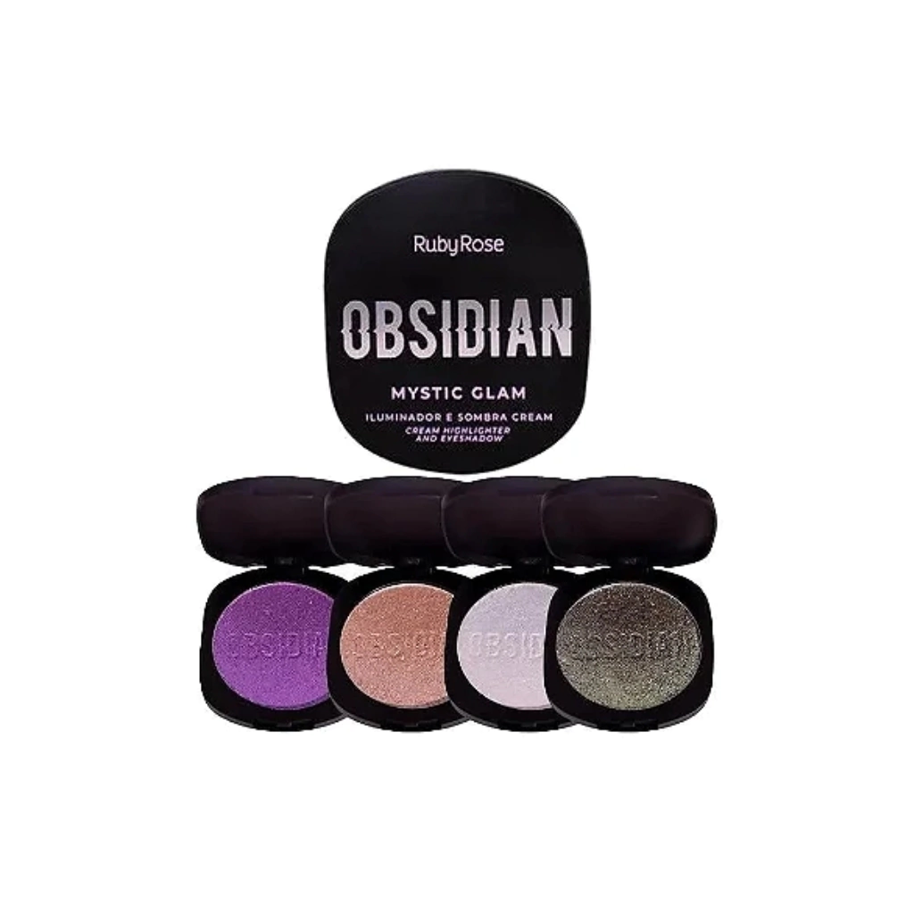 O MYSTIC GLAM Iluminador e Sombra Obsidian é um produto multifuncional que oferece um acabamento brilhante e possui uma textura cremosa que desliza suavemente na pele. Aqui estão as características principais e usos do produto: