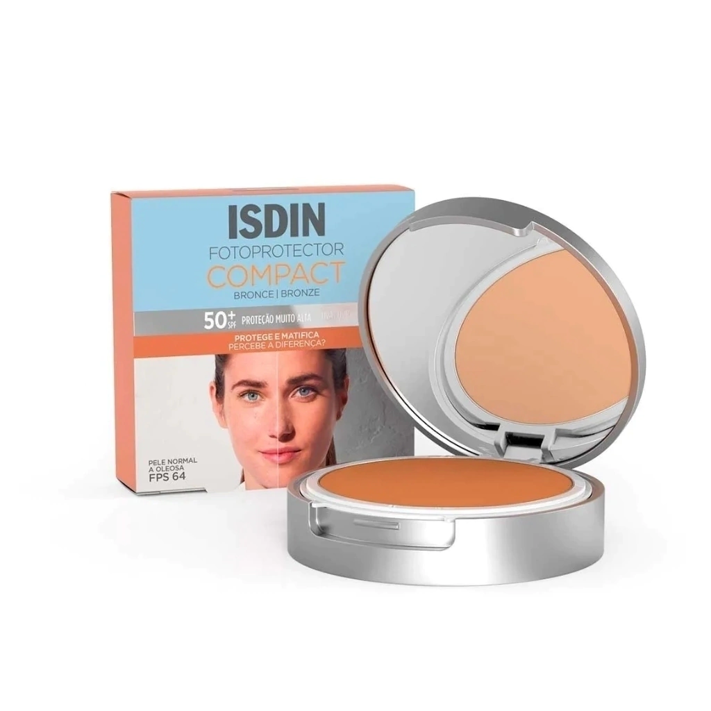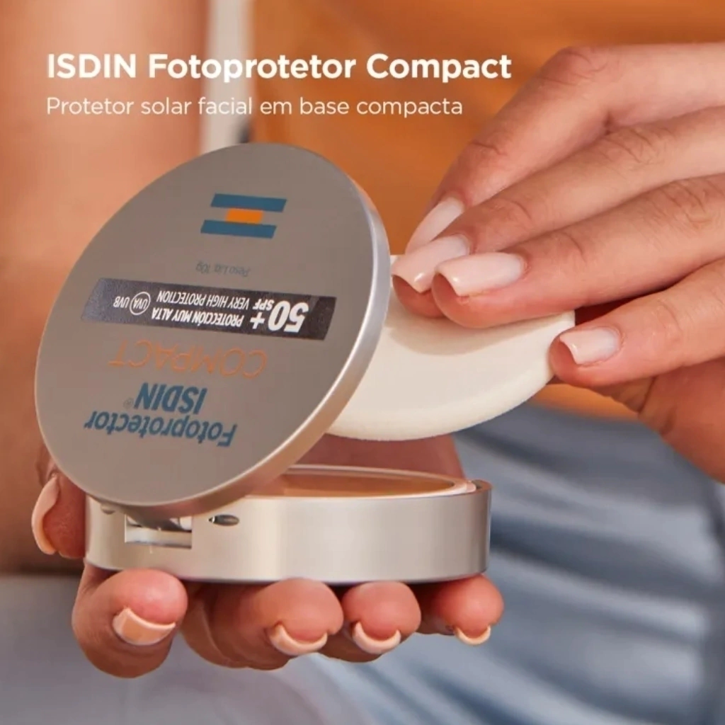 Protetor solar facial para todos os tipos de pele. ISDIN Fotoprotector Compact 50+ combina a eficácia na proteção contra os raios UV com a capacidade de proporcionar uma pele com aparência natural e uniforme, minimizando imperfeições.