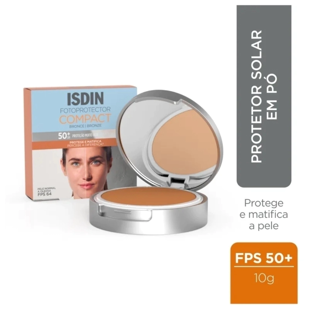 O Protetor Solar Facial ISDIN ISDIN Fotoprotector Compact 50+ apresenta fórmula resistente à água, longa duração e oferece conforto para peles sensíveis. Protege e matifica a pele, mantendo um tom natural que suaviza a textura. Testado dermatologicamente e oftalmologicamente.