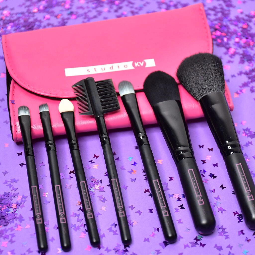O kit Sweet Glam SWG é composto por 7 pincéis de cerdas sintéticas com estojo em couro sintético na cor rosa.