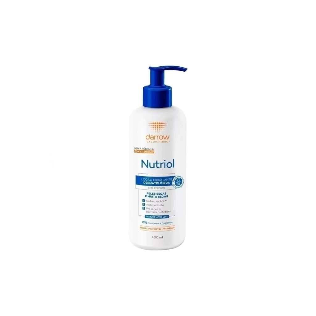 Nutriol hidratante intensivo dermatológico garante hidratação intensiva por 48h + ação antioxidante. Ideal para peles secas e ressecadas, sua fórmula exclusiva possui complexo Nutri-Aox (Populus Nigra + Vitamina E), que protege a pele do envelhecimento e danos oxidativos, e complexo Nutri-Hidratante (Esqualano Vegetal + Ácidos Graxos essenciais) que hidrata e nutre intensamente.