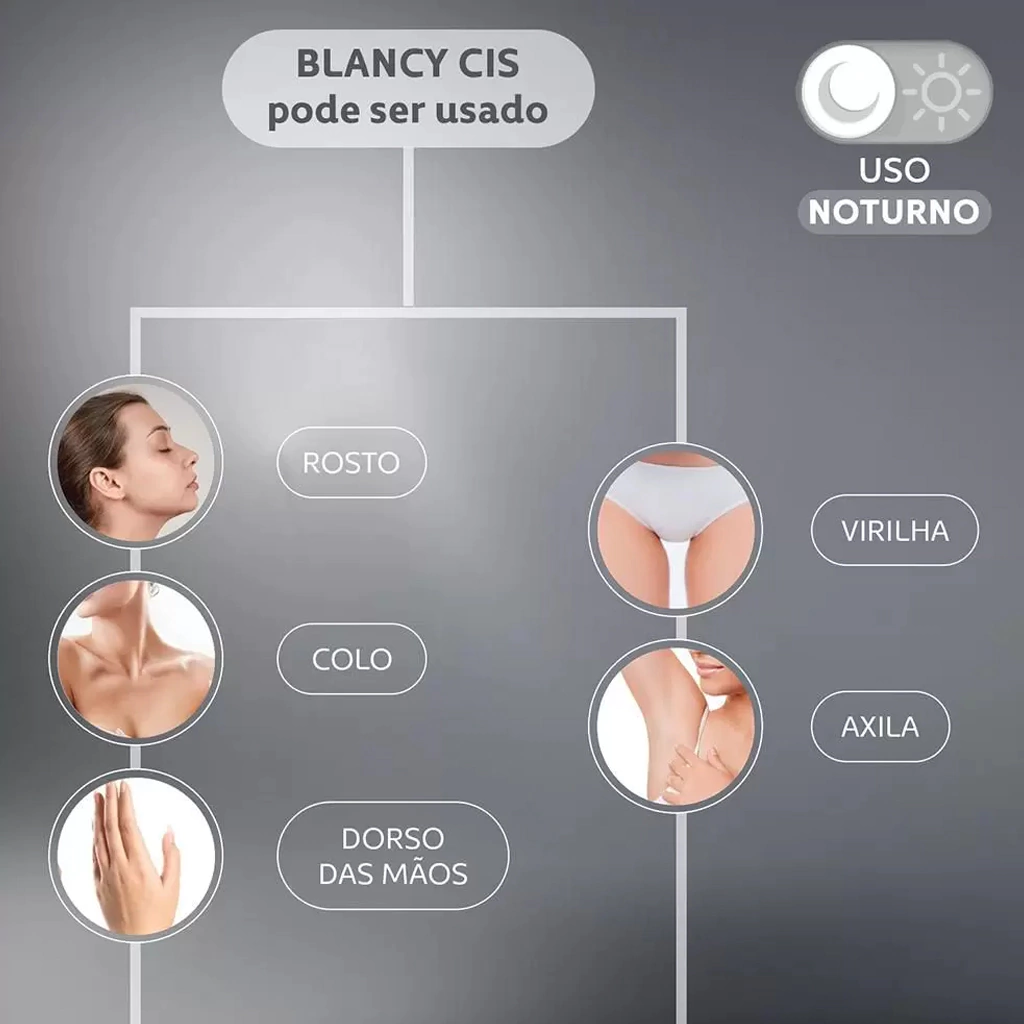 BLANCY CIS é um clareador que reduz as desordens pigmentares, promovendo melhor uniformização do tom da pele.