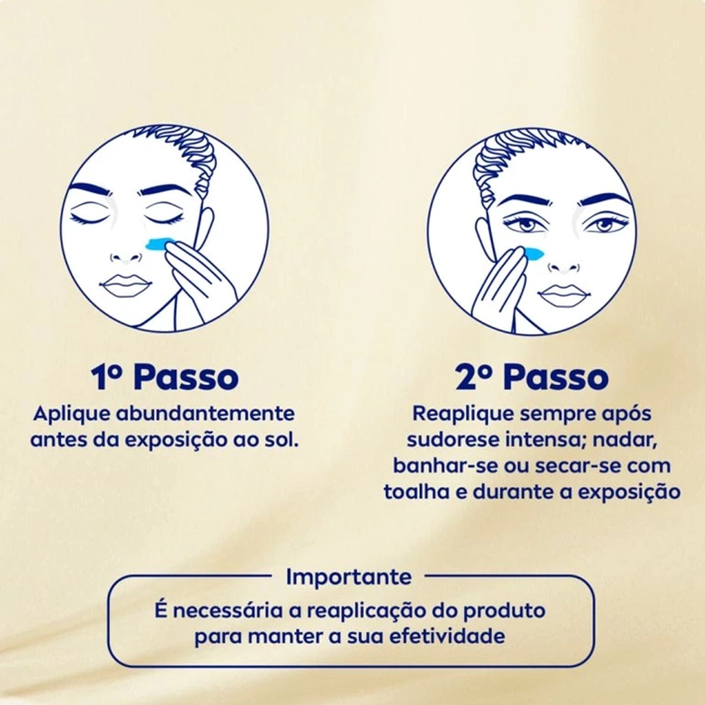 Desenvolvido especialmente para a pele delicada do rosto, este protetor solar promove proteção imediata de curto e longo prazo contra os efeitos dos raios UVA e UVB, prevenindo o envelhecimento precoce da pele. Enriquecido com ácido hialurônico e vitamina E, garante efeito revigorante e hidratante na pele. Com textura leve e fórmula não oleosa e não pegajosa, uniformiza o tom da pele deixando uma aparência ainda mais iluminada..