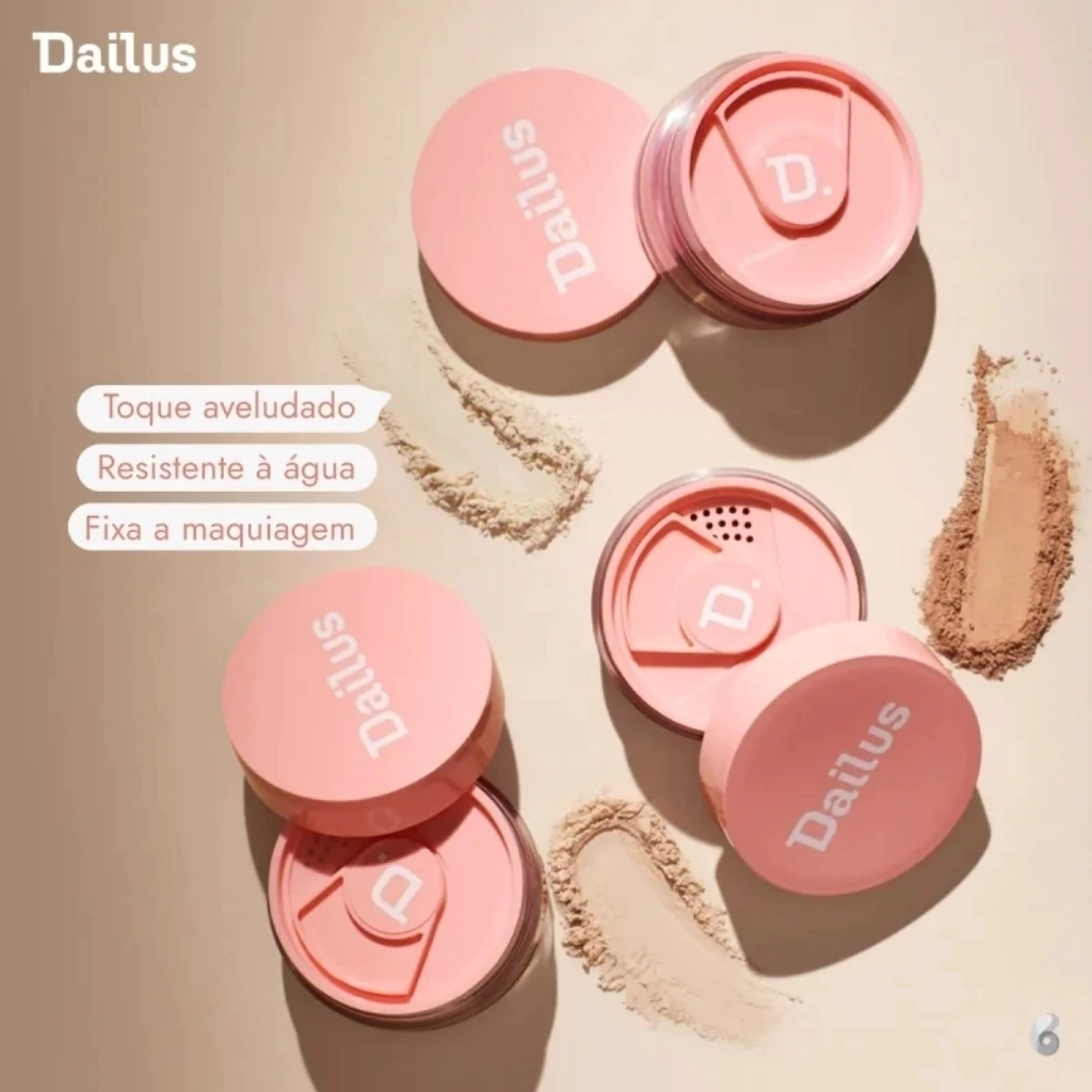 Perfeito pra finalizar, fixar e aumentar a duração da sua maquiagem, o Pó Solto Ultrafino da DAILUS tem textura fina, toque aveludado e é perfeito pra controlar o excesso de oleosidade e matificar a pele. Sem craquelar durante o uso, sua fórmula premium entrega o incrível efeito soft focus , um disfarce óptico poderoso que minimiza os poros e linhas de expressão.
