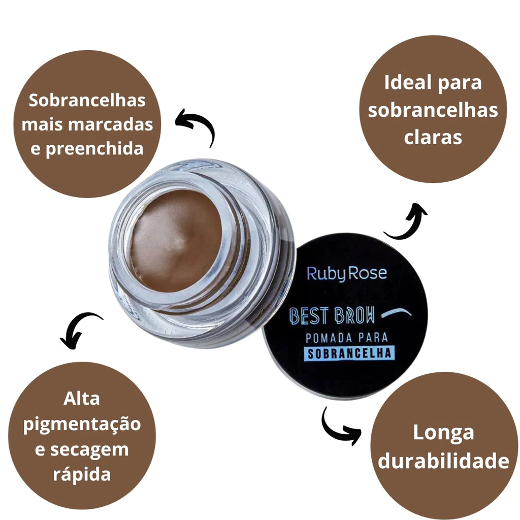 A Pomada Best Brow é a primeira novidade da linha de produtos para sobrancelhas. Ideal para quem deseja uma sobrancelha mais marcada e preenchida. Possui alta definição e pigmentação, além de secagem rápida.