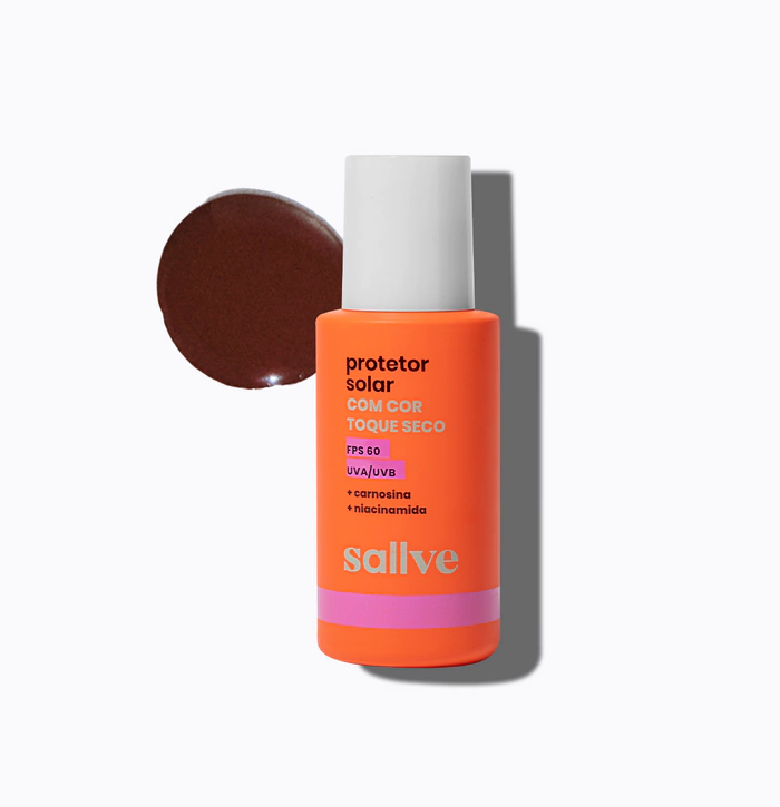 Protetor solar facial FPS60 com cor. possui cobertura leve em 10 cores, toque seco e alta proteção UVA/UVB. uniformiza o tom da pele, é compatível com maquiagem, não esfarela, não escorre e não arde os olhos.