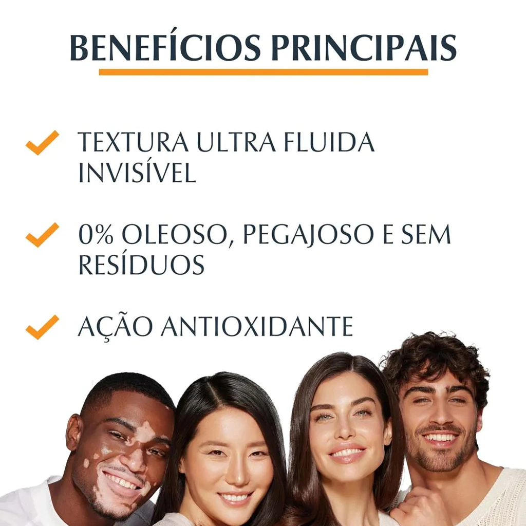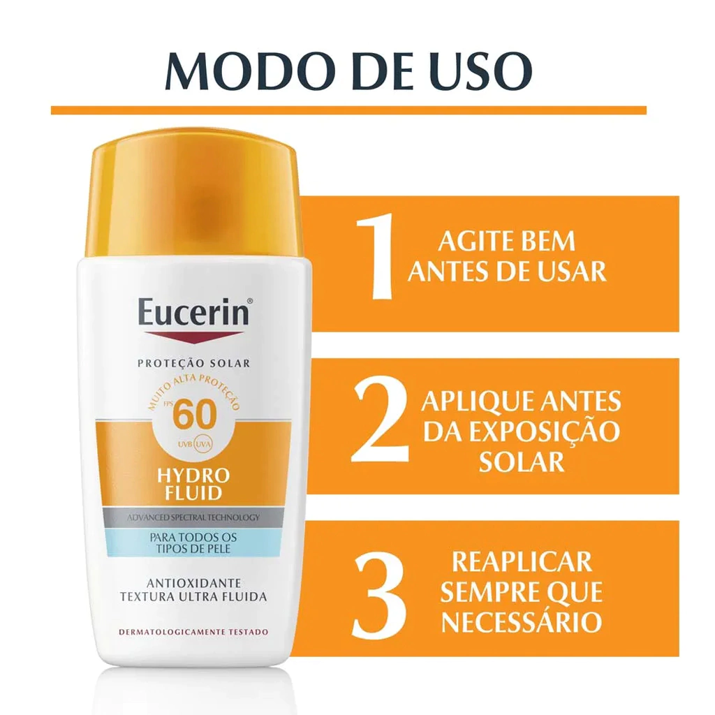 Advanced Spectral Technology Eucerin: Sun Hydro Fluid, proteção solar inovadora com sistema de filtros fotoestáveis UVA/UVB de amplo espectro e com o ativo Licochalcona A, um potente antioxidante que atua combatendo os radicais livres causados pela exposição à luz visível. Também tem o Ácido Glicirrétinico que auxilia na reparação do DNA da pele.