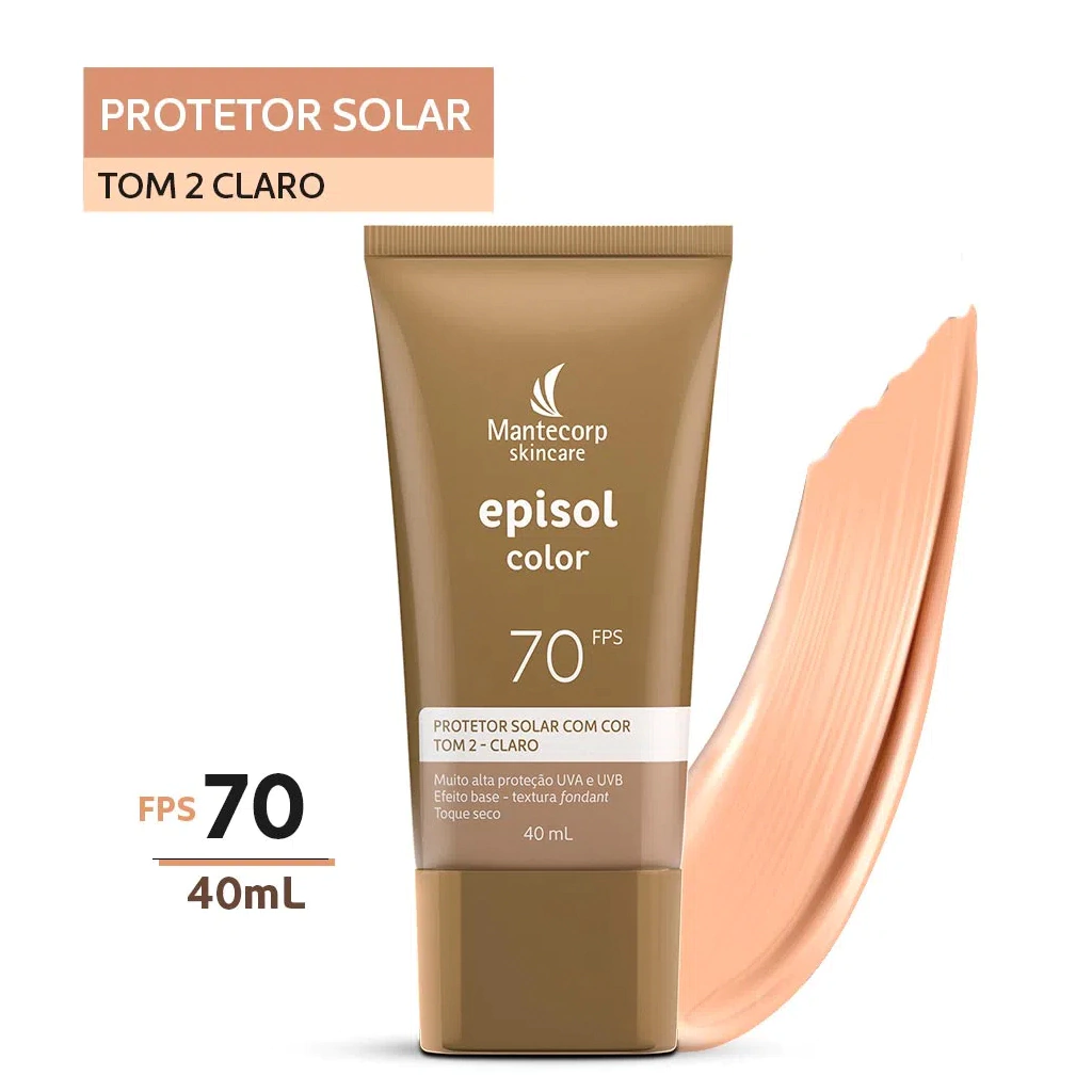 O que é Episol Color FPS 70? Episol Color FPS 70 é um protetor solar facial com cor, ideal para todos os tipos de pele, inclusive as mais sensíveis. Sua fórmula avançada contém ativos e antioxidantes que protegem contra raios UVA, UVB, luz visível e radiação infravermelha.