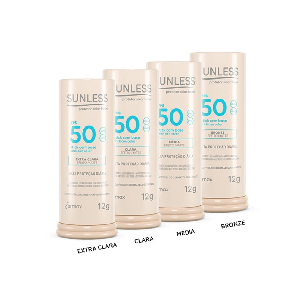 Com embalagem prática e de fácil aplicação, o Protetor Solar Stick com Base Extra Clara Sunless 12G possui em sua composição filtros fotoestáveis, que protegem contra a ação nociva dos raios UVA e UVB, auxiliando no combate ao envelhecimento precoce da pele. Multifuncional, o protetor pode ser usado como base de efeito matte de alta cobertura, que disfarça imperfeições. Sua fórmula é hipoalergênica e evita a obstrução dos poros e erupções cutâneas.