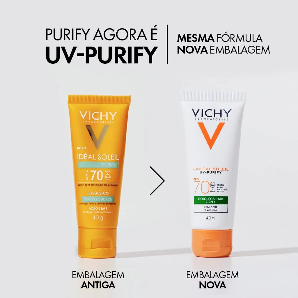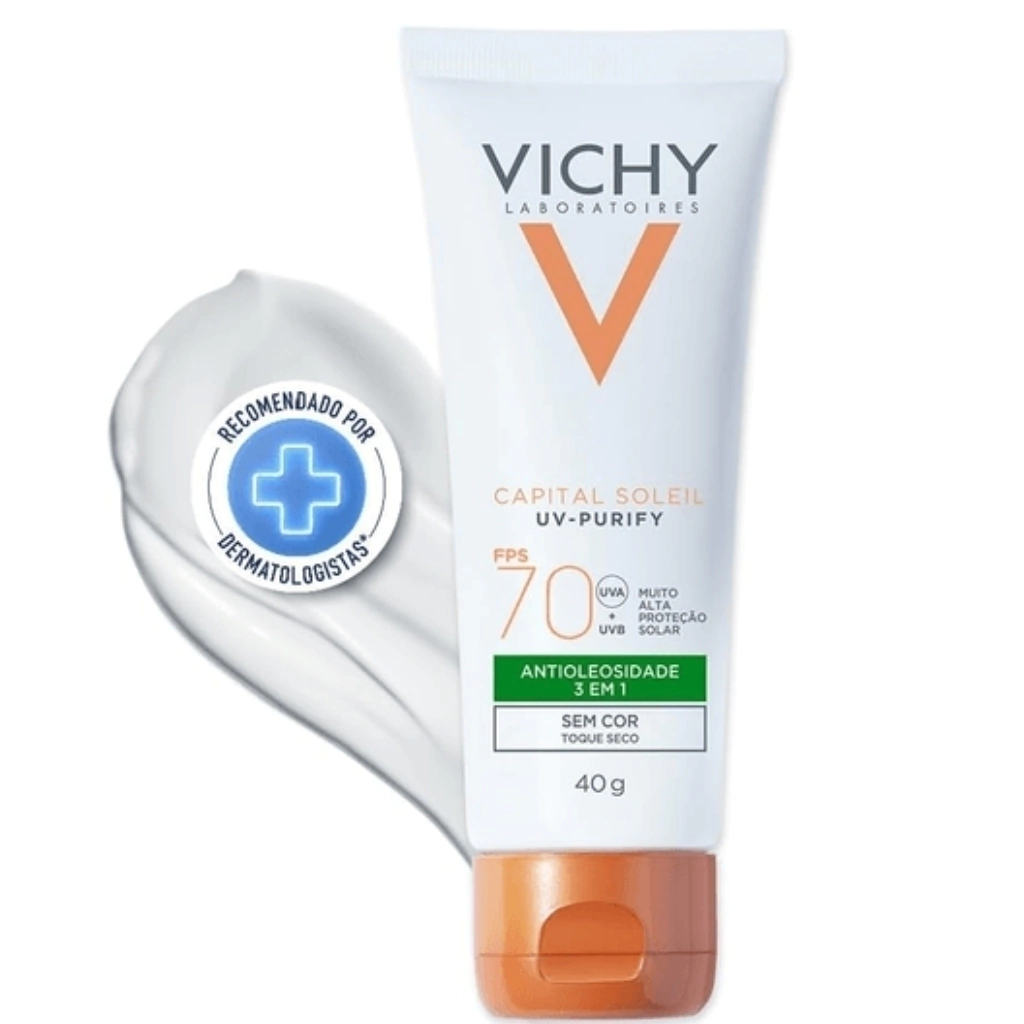 O Capital Soleil Purify 40g da La Roche-Posay é um protetor solar facial antioleosidade especialmente desenvolvido para peles oleosas, com ação purificante e tripla eficácia: controla, purifica e revitaliza a pele. Disponível nas versões sem cor e com cor (clara e média), protege contra os raios UVA e UVB e previne os efeitos nocivos da exposição solar.