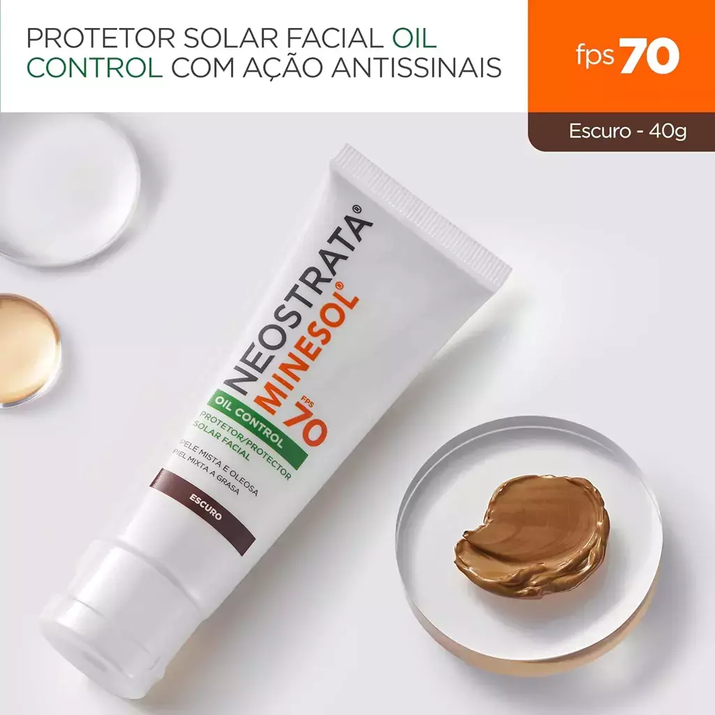 Proteção solar diária com controle e redução da oleosidade da pele. Neostrata Minesol Oil Control FPS 70 é uma linha de proteção solar diária, que oferece alta proteção UVA/UVB e atua no controle imediato e prolongado da oleosidade da pele.