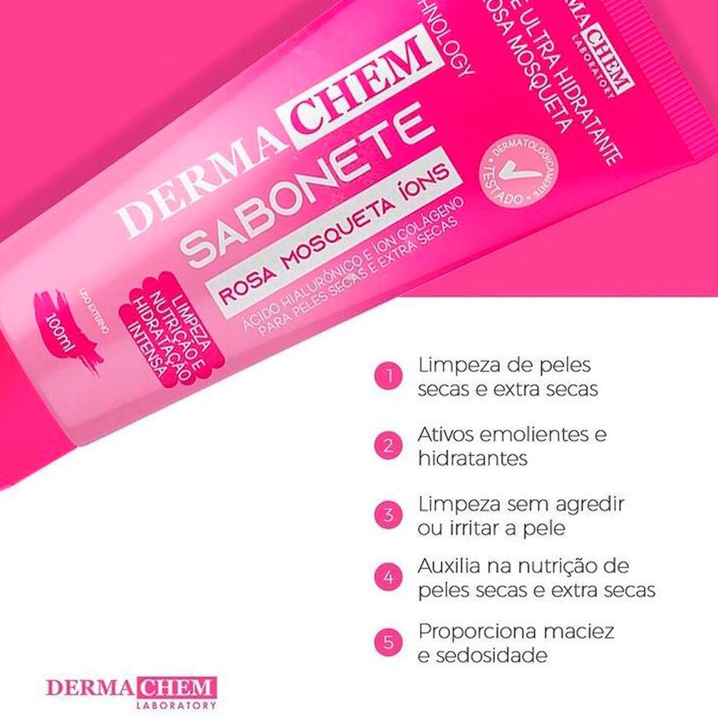 O sabonete Ultra hidratante Rosa Mosqueta da Dermachen foi desenvolvido especialmente para limpeza de peles secas e extra secas, pois é um tipo de pele que requer mais cuidado. Pensando nisso colocamos mais ativos emolientes e hidratantes, que vão limpar sem irritar e sem agredir a pele. Esses ativos naturais da rosa mosqueta associado ao ácido hialurônico auxiliam na nutrição das peles seca e extraseca proporcionando maciez e sedosidade.