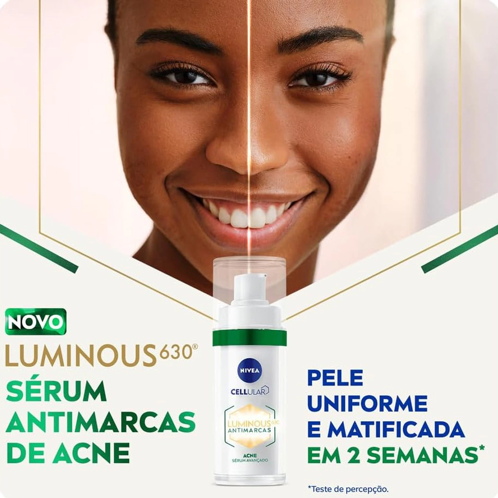 NIVEA Sérum Facial Cellular Luminous 630 ANTIMARCAS Acne é um sérum avançado que reduz marcas escurecidas de acne em 2 semanas*.