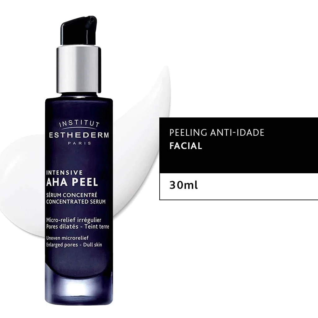 Sérum Facial Esthederm - Intensive Aha Peel Sérum Concentré suaviza e refina a superfície da pele, reduz a aparência dos poros e as marcas residuais, e uniformiza a pele, deixando a pele com aspecto jovem e saudável. A pele fica mais macia, com textura mais uniforme e poros menos aparentes. A pele antes sem brilho recupera sua luminosidade e aparência saudável. Textura leve e refrescante, com toque aveludado. Aplicar no rosto pela manhã e/ou a noite de 2 a 3 vezes por semana, conforme orientação médica.