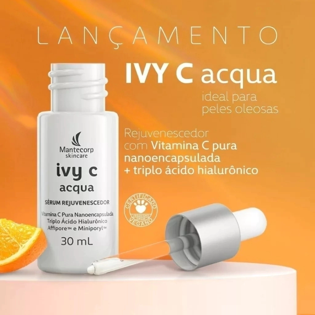 O Sérum Rejuvenescedor Facial Ivy C Acqua 30ml é um tratamento diário que ajuda a rejuvenescer e revitalizar a pele, promovendo hidratação profunda e combate aos sinais de envelhecimento. Enriquecido com ativos poderosos, auxilia na renovação celular, melhora a elasticidade da pele e proporciona aparência mais firme e iluminada. Sua textura leve e de rápida absorção permite uso antes da maquiagem ou como parte da rotina de skincare, ideal para todos os tipos de pele.