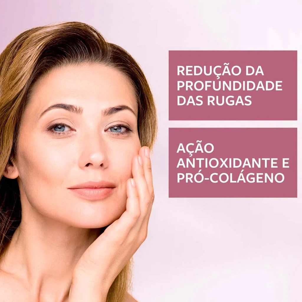 Sua fórmula contém associação de Retinol Nanoencapsulado, Nano Retinoato, Ácido Hialuronico vetorizado em Silício e Matrixyl - ativos que em combinação estimulam a produção de colágeno e elastina, hidratam e densificam a estrutura da pele.