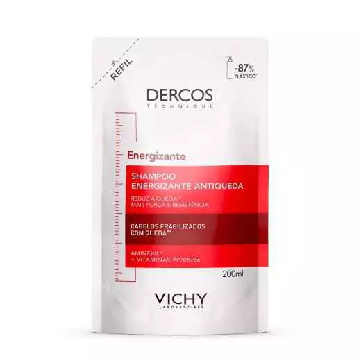 A linha Dercos Energizante é o tratamento Vichy para cabelos enfraquecidos e com queda. Pelo seu ativo patenteado Aminexil, o Shampoo Dercos Energizante promove ação antiqueda, além de também fortalecer os fios enfraquecidos, por conter complexo de vitaminas PP + B5 + B6.
