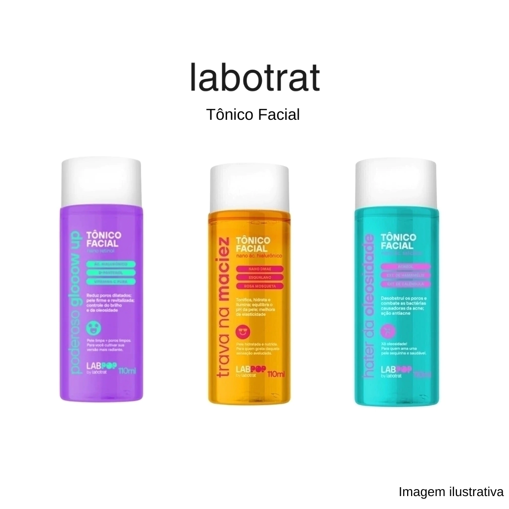 O Tônico Facial Labotrat LabPop Glow Up é um poderoso aliado para cuidados com a pele. Enriquecido com nano retinol, ácido hialurônico, D-pantenol e vitamina C pura, este tônico ajuda a reduzir poros dilatados, promove firmeza e revitalização da pele, além de controlar o brilho e a oleosidade. Ideal para uma rotina de cuidados diários, ele proporciona uma pele limpa, equilibrada e com um glow natural. Perfeito para quem deseja uma pele saudável e radiante todos os dias!