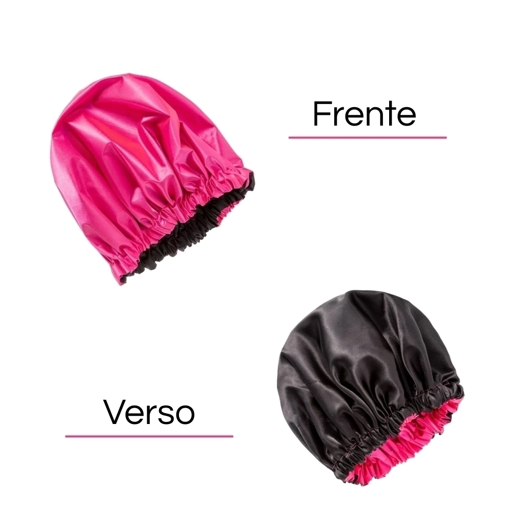2 em 1, possui lado hipermeavel resistente e duravel que mantem os cabelos secos durante o banho e um lado de cetim que mantem os fios alinhados